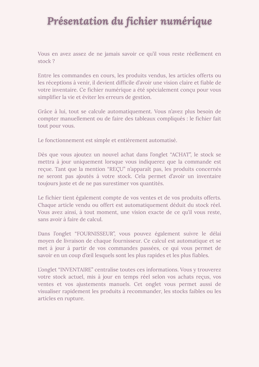 FICHIER NUMERIQUE - INVENTAIRE